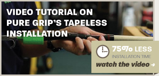 A. Yes. Double sided tape can be used, but it does make it a little more difficult to put the grip on with air. If you use double sided tape we recommend that you wipe the tape down with a wet cloth prior to applying the grip. This will take just enough tack off the tape to get the grip on. If you are using tape to build up the grip size, we recommend using masking tape instead of double sided tape. This will make application easier and the grip will still be secure. This will also allow you to blow the grip off and apply a new grip without having to rebuild the tape! View our video tutorial on PURE Grip's Tapeless installation process